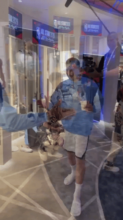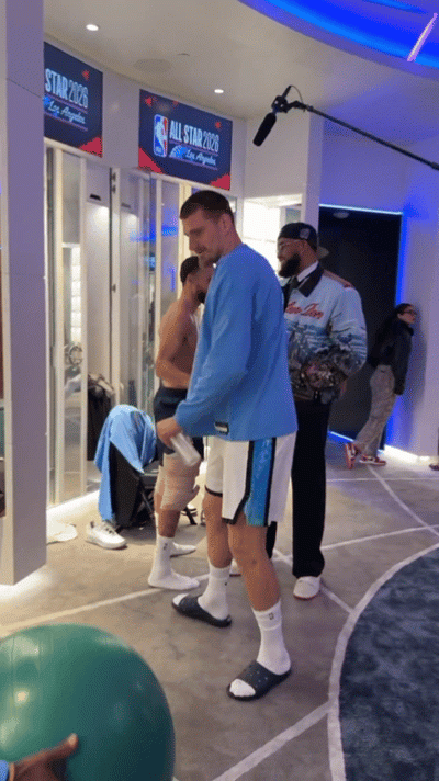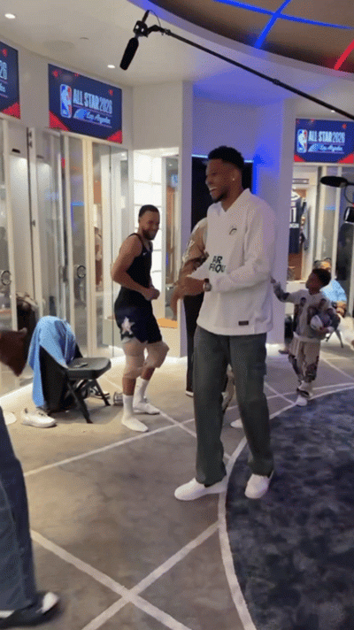 詹姆斯先后与库里、唐斯、约基奇、字母哥和东契奇进行了拥抱。