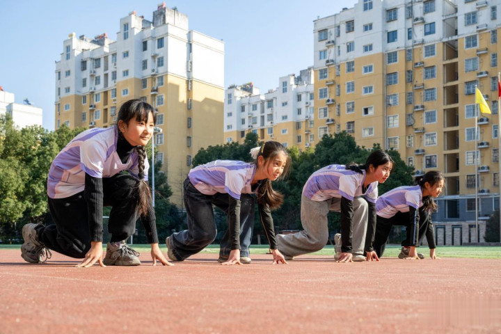安徽省合肥市庐阳区林店街谈六安路小学荣城花圃分校,小学生正在进行体能磨练。(赵明摄/光明图片)