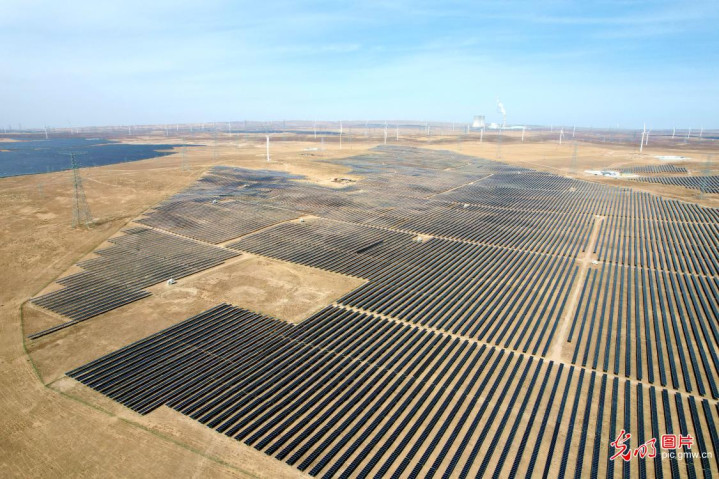 频年来,宁夏坚执生态优先、绿色发展的理念,轻易引进并树立太阳能发电、风力发电等新动力技俩。当地供电部门通落伍候改革和管事升级,全力保险新动力并网消纳,积极促进动力电力绿色转型。图为3月18日,在银川灵武市白土岗乡的一处光伏产业基地。(周序鹏摄/光明图片)