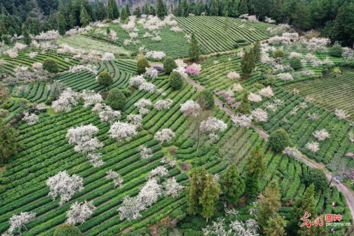 频年来,贵州省黔南布依族苗族自治州福泉市通过党建引颈,轻易发展茶产业,在资金保险、时候管事、东谈主员培训等方面帮扶栽种户,助力村民增收致富。图为3月21日拍摄的福泉市陆坪镇福兴村牛滚凼生态茶叶基地本旨。(易盛武摄/光明图片)