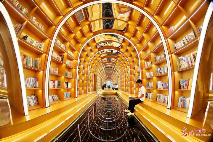 重庆垫江县桂溪街谈新华书店,读者正在阅读。(孙凯芳摄/光明图片)