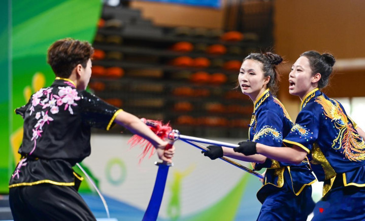 在江西省赣州市章贡区市民健身中心澳门游戏网,大学生正在进行中华传统技击比赛。(胡江涛摄/光明图片)