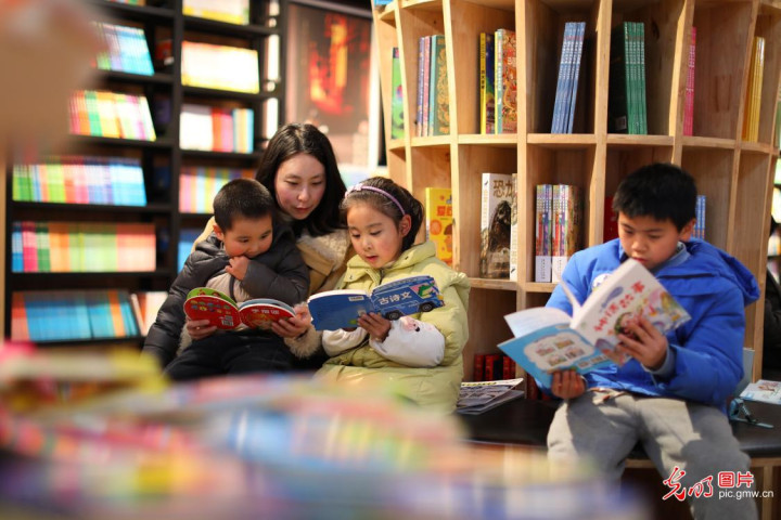 小一又友在河北秦皇岛一家城市书斋阅读典籍。(曹建雄摄/光明图片)