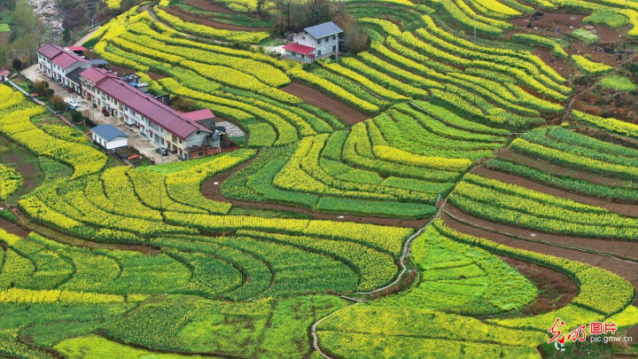脚下恰好赏花季,重庆石柱土家眷自治县秀才村千亩油菜花竞相洞开,好意思不堪收,开云体育官方网站蛊惑旅客前来踏青赏花。(陈清素摄/光明图片)