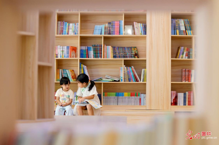 两个小一又友在江西吉安新时间好意思丽实际中心城市书斋阅读。(陈福平摄/光明图片)