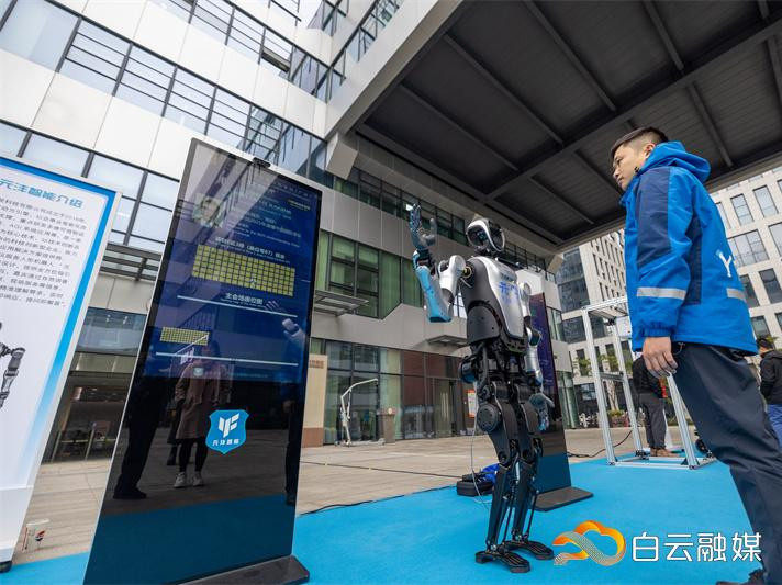 2025年“读懂中国”国际会议上,广州元沣智能科技有限公司的会议指引机器人“元仔”为嘉宾精准找位而出圈;2026年广州两会现场,广东云韬氢能科技有限公司(以下简称“云韬氢能”)的氢能机器狗和人握手火爆网络……近日,这些火出圈的机器人集中亮相广州(白云)机器人产业园,共同展现白云机器人产业的前沿科技成果。