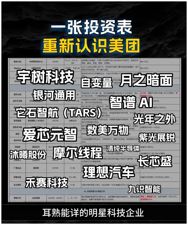 关联词简直团结时期,好意思团又被媒体报谈简直投资了“中国硬科技半壁山河”,掩盖AI大模子、具身智能、半导体——包括正在冲刺上市的宇树,年头拿下超10亿元融资的自变量机器东谈主,在春晚亮相的星河通用机器东谈主,AI领域炙手可热的月之暗面,还有摩尔线程、智谱AI、星海图......
