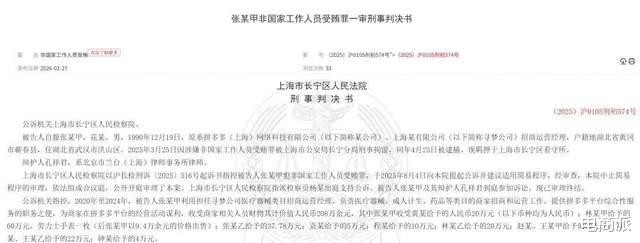 判决书骄气,拉扎斯网罗科技(上海)有限公司的又名职工,因犯非国度工作主谈主员纳贿罪,被判处有期徒刑八个月,缓刑一年。