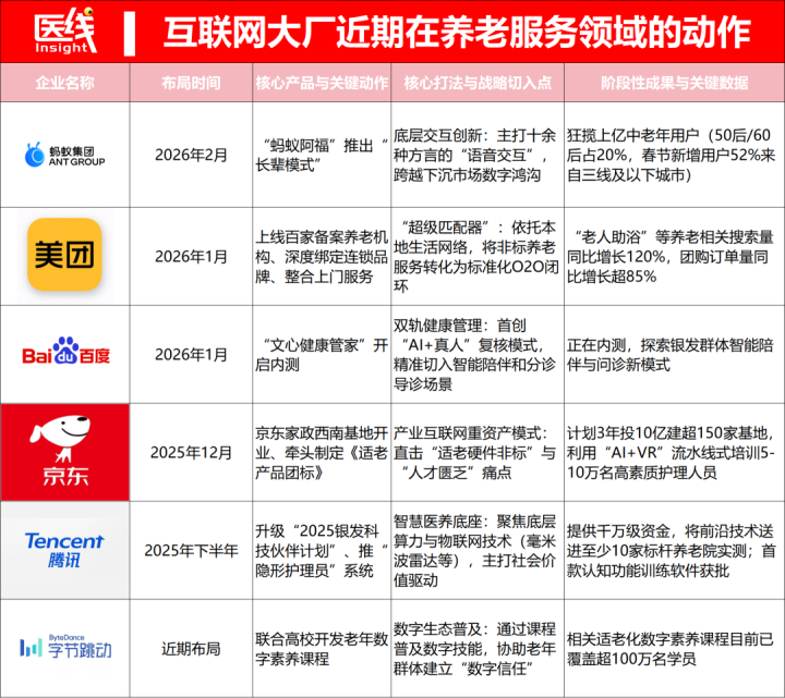 可以说,一场史无先例的“养老职业市集卡位战”,正在中国最中枢的互联网巨头圈内全面打响。