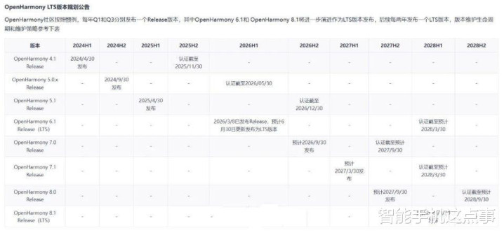 而把柄OpenHarmony社区最新公布的LTS版块狡计,OpenHarmony 7.0 Release展望在2026年9月30日崇拜发布,认证周期扫尾2027年9月30日。