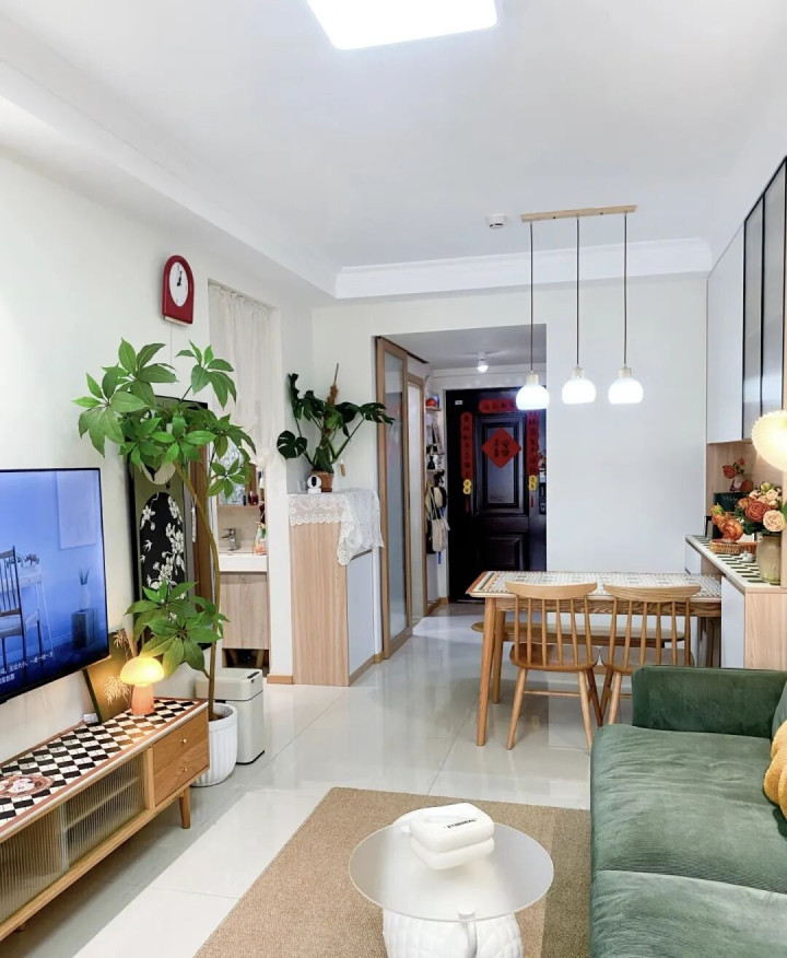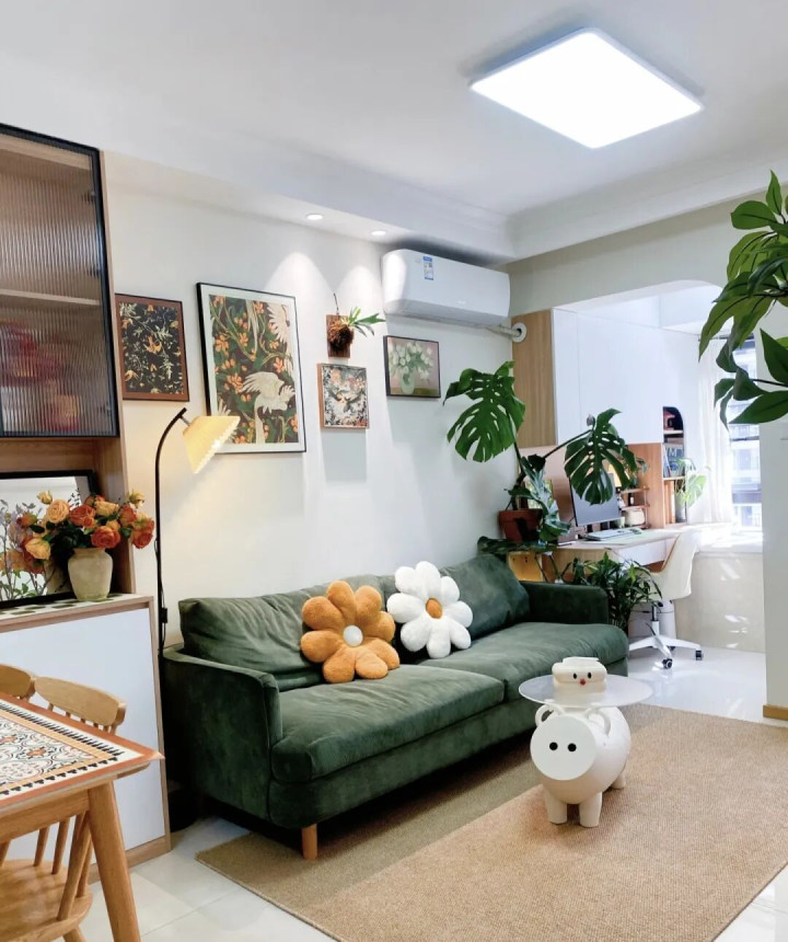 这套路险些是个“魔术”,把沙发、床、衣柜皆酿成了“松开版”,这么会显得空间更大。