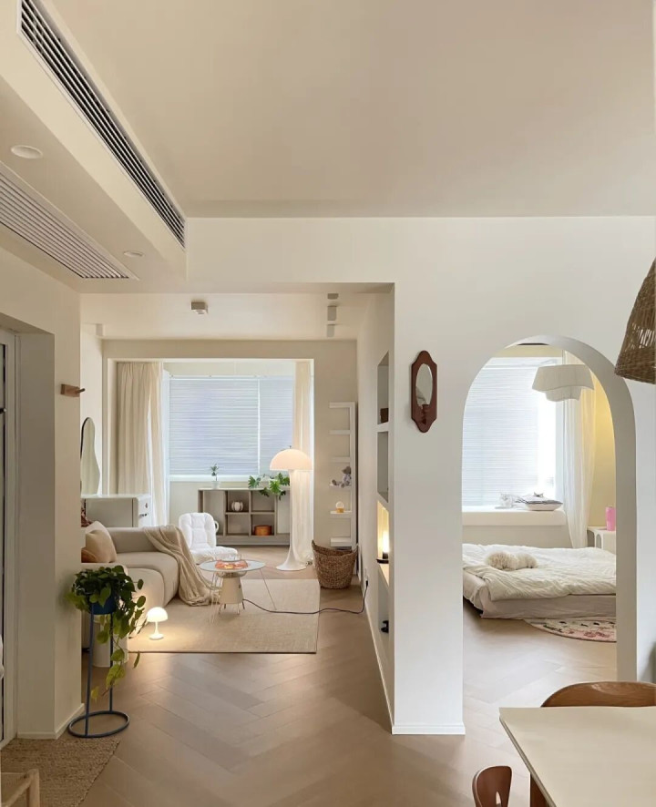 比如,很各样板间弃取不装房门,或者把相邻房间的门皆翻开,这么一来就减少了阁下感,让东谈主嗅觉空间更为通透。
