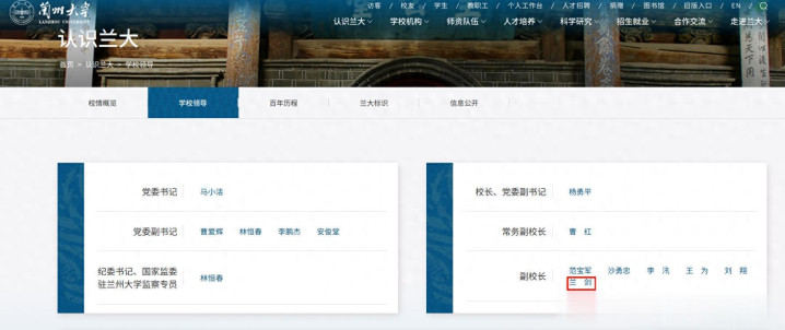 这次兰剑调任兰州大学,兴味远超一次时时的东说念主事调养。现在,兰州大学共有7位副校长,除兰剑外,其余6东说念主即曹红、范宝军、沙勇忠、李汛、王为、刘翔均为兰大本校培养、长久在校责任的“原土派”学者,而兰剑是独逐个位既无兰大学习经历、也无责任经验的“外来者”。