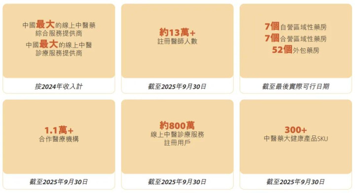 按2024年收入计算,公司亦在中国线上中医诊疗服务市场(线上中医综合服务市场的主要细分市场)以16.7%的市场份额位居第一。成立于2015年,根据弗若斯特沙利文报告,公司是中国最早的线上中医诊疗服务提供商之一。