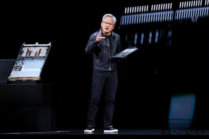 图片:英伟达CEO黄仁勋在公开场地共享不雅点,突显其对AI生态的投资布局