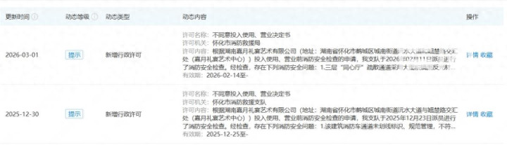 湖南嘉月礼宴艺术有限公司两次苦求均被消防驳回 着手:企查查