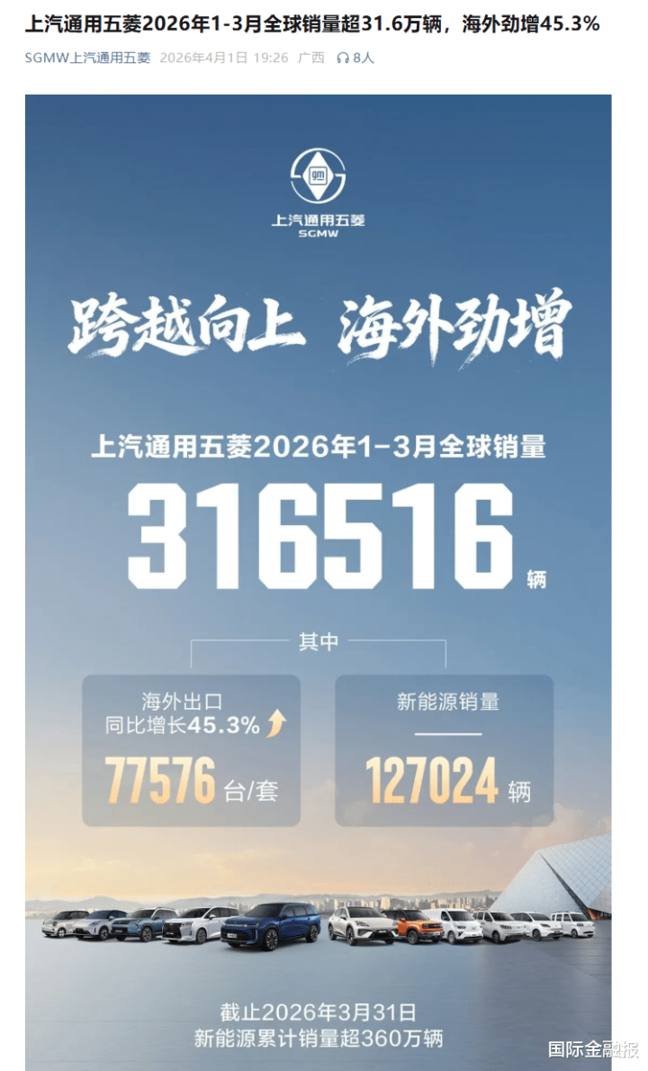 2026年开年,上汽通用五菱交出了一份冰火两重天的销量答卷。最新数据显现,一季度,上汽通用五菱人人累计销量31.65万辆,同比大幅下滑16%;其中3月单月销量13.4万辆,同比下落15%。尽管外洋出口施展亮眼,一季度达7.76万辆,同比增长45.3%,但国内主力市集的萎缩已成事实。