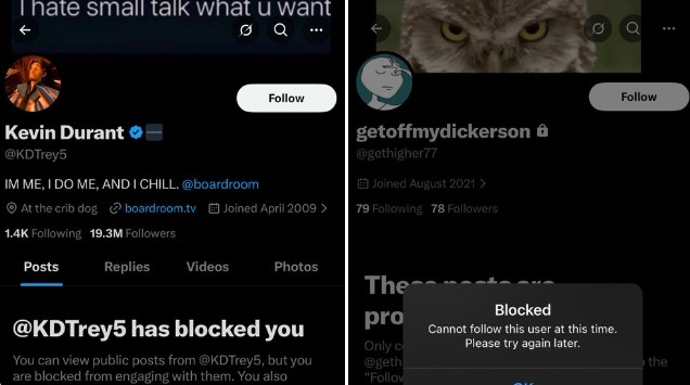有网友暗示,杜兰特的大号将他拉黑了,而这个他不虞志的疑似小号也将他拉黑了,是以他投诚这个账号即是属于杜兰特。