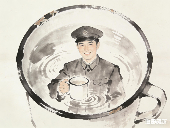 可月亮边上,分明站着个穿军装的年青东说念主,瘦高个,浓眉大眼,正端着阿谁茶缸,冲谁笑。