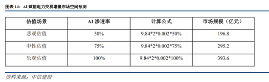 总体来看,在国度政策落地实施进展成功、现货阛阓稳步激动的前提条目下,咱们以为电价波动性增强将快速打开电力阛阓化主体对AI往返产物及服务的需求空间。因此,在悲不雅估值场景下,AI浸透率预期达到50%,2030年AI赋能电力往返阛阓增量空间将达到196.8亿元;在中性估值场景下,AI浸透率预期达到75%,2030年AI赋能电力往返阛阓增量空间将达到295.2亿元;在乐不雅估值场景下,AI浸透率预期达到100%,2030年AI赋能电力往返阛阓增量空间将达到393.6亿元。