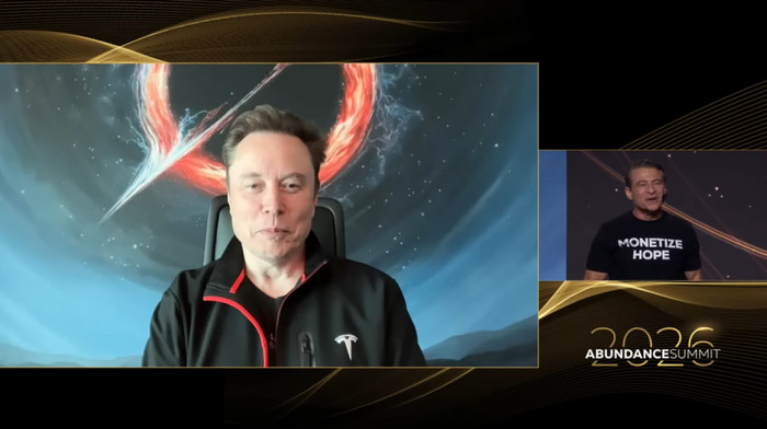 当地时刻3月11日,在“AbundanceSummit2026”峰会上,奇点大学(SingularityUniversity)长入首创东说念主PeterH.Diamandis与特斯拉首创东说念主埃隆·马斯克(ElonMusk)伸开了一段深度对谈。