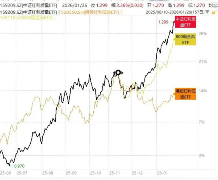 中证红利质量ETF(159209.SZ)、港股红利低波ETF(520550.SH)、800现金流ETF(159119.SZ)是一个立足价值、兼顾质量与防御、实现跨市场分散的理性选择。